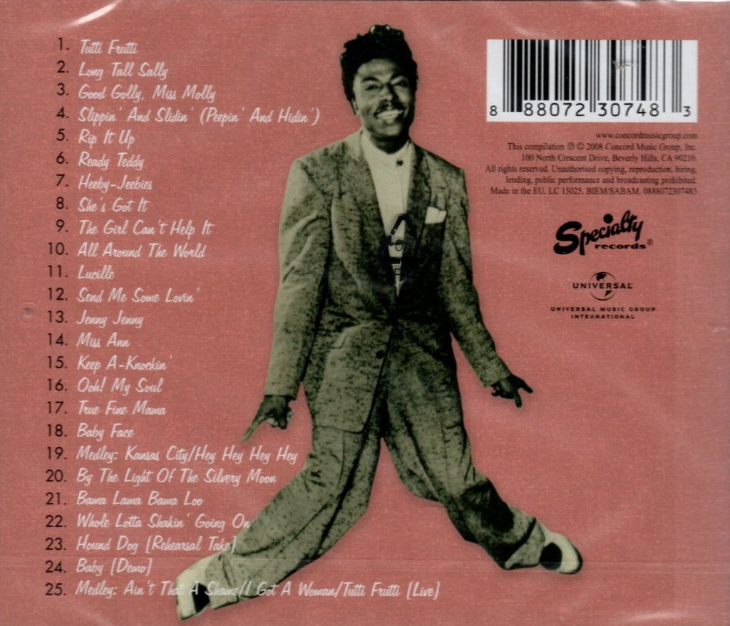 1 Tutti Frutti 2 Long Tall Sally 3 Good Golly, Miss Molly 4 Slippin' And Slidin' (Peepin' And Hidin') 5 Rip It Up 6 Ready Teddy 7 Heeby-Jeebies 8 She's Got It 9 The Girl Can't Help It 10 All Around The World 11 Lucille 12 Send Me Some Lovin' 13 Jenny Jenny 14 Miss Ann 15 Keep A-Knockin' 16 Ooh! My Soul 17 True Fine Mama 18 Baby Face 19 Medley: Kansas City / Hey Hey Hey 20 By The Light Of The Silvery Moon 21 Bama Lama Bama Loo 22 Whole Lotta Shakin' Going On 23 Hound Dog [Rehearsal Take] 24 Baby [Demo] 25 Medley: Ain't That A Shame / I Got A Woman / Tutti Frutti [Live]