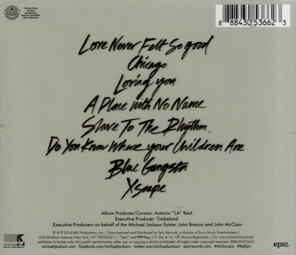 1 Love Never Felt So Good 2 Chicago 3 Loving You 4 A Place With No Name 5 Slave To The Rhythm 6 Do You Know Where Your Children Are 7 Blue Gangsta 8 Xscape