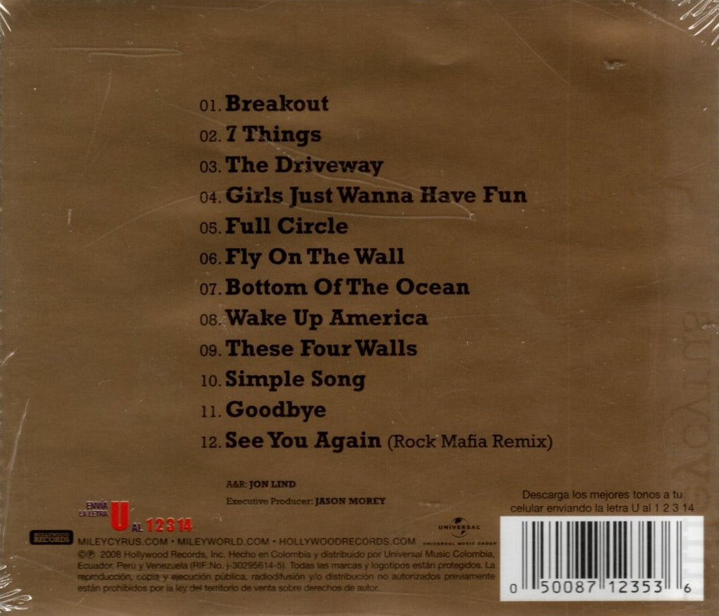 1 Breakout 2 7 Things 3 The Driveway 4 Girls Just Wanna Have Fun 5 Full Circle 6 Fly On The Wall 7 Bottom Of The Ocean 8 Wake Up America 9 These Four Walls 10 Simple Song 11 Goodbye 12 See You Again (Rock Mafia Remix)