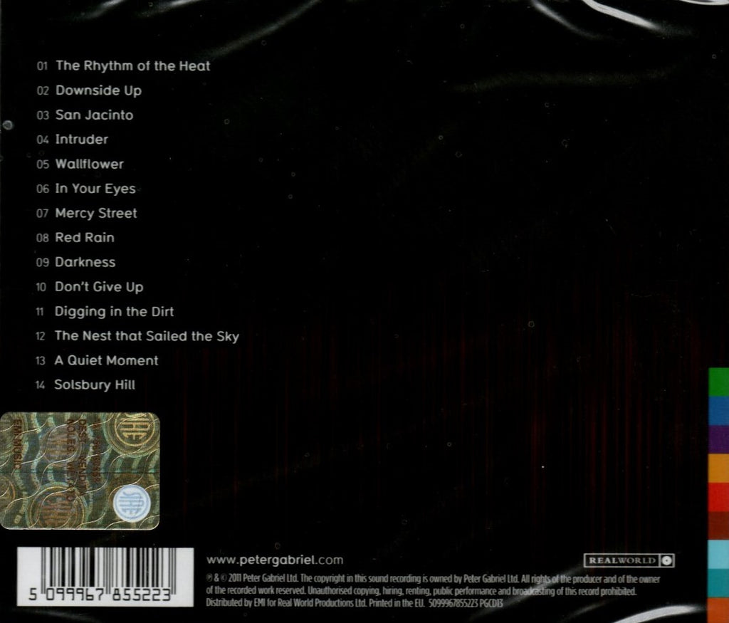 1 The Rhythm Of The Heat 2 Downside Up 3 San Jacinto 4 Intruder 5 Wallflower 6 In Your Eyes 7 Mercy Street 8 Red Rain 9 Darkness 10 Don't Give Up 11 Digging In The Dirt 12 The Nest That Sailed The Sky 13 A Quiet Moment 14 Solsbury Hill