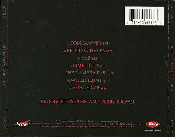 1. Tom Sawyer2. Red Barchetta 3. YYZ 4. Limelight 5. The Camera Eye 6. Witch Hunt7 Vital Signs