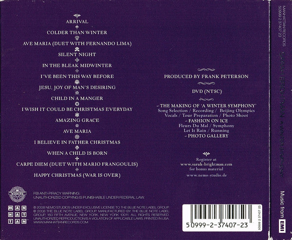 1.Arrival 2.Colder Than Winter 3.Ave Maria 4.Silent Night 5.In the Bleak Midwinter 6.I've Been This Way Before 7.Jesu, Joy of Man's Desiring 8.Child in a Manger 9.I Wish It Could Be Christmas Everyday 10.Amazing Grace 11.Ave Maria 12.I Believe in Father Christmas 13.When a Child Is Born 14.Carpe Diem 15.Happy Christmas (War Is Over)