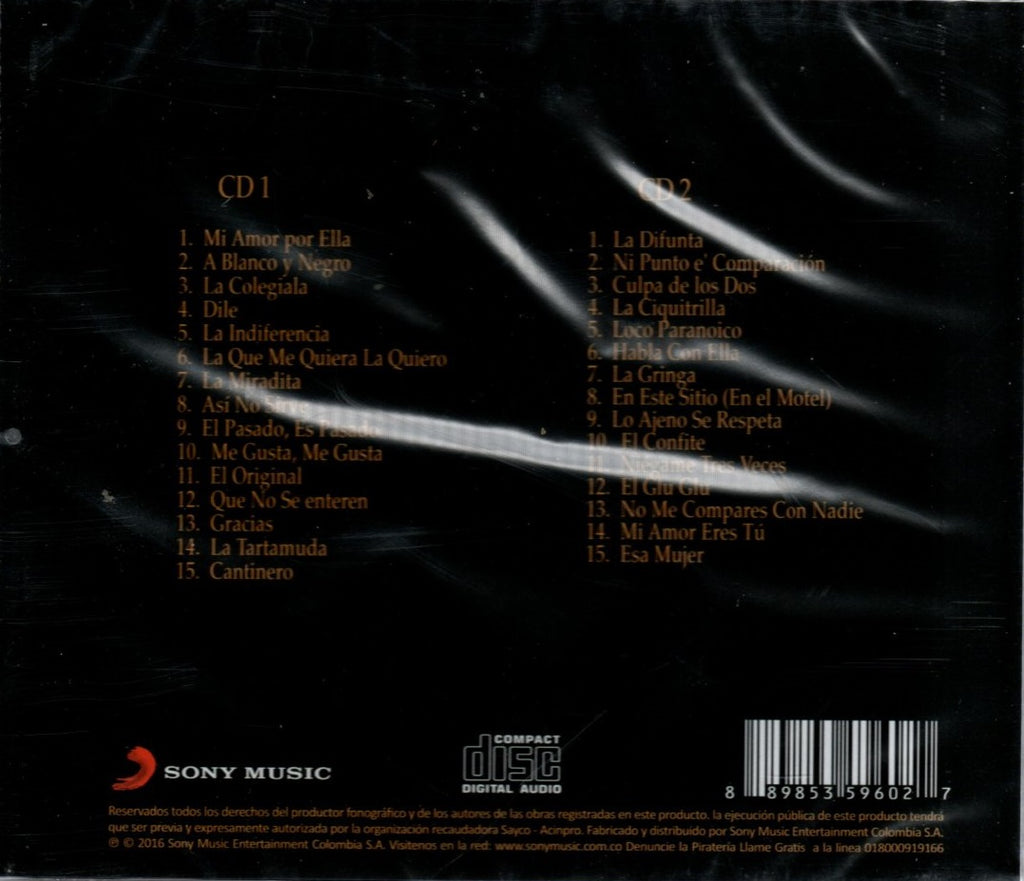 CD1 1 Mi amor por ella 2 A blanco y negro 3 La Colegiala 4 Dile 5 La indiferencia 6 La que me quiera la quiero 7 La miradita 8 Asi no sirve 9 El pasado, es pasado 10 Me gusta, Me gusta 11 El original 12 Que no se enteren 13 Gracias 14 La tartamuda 15 Cantinero CD2 1 La difunta 2 Ni punto e´ comparacion 3 Culpa de Dios 4 La chiquitrilla 5 Loco paranoico 6 Habla con ella 7 La gringa 8 En este sitio 9 Lo ajeno se respeta 10 El confite 11 Niegame tres veces 12 El glu glu 13 No me compares con nadie 14 Mi amor eres tu 15 Esa mujer