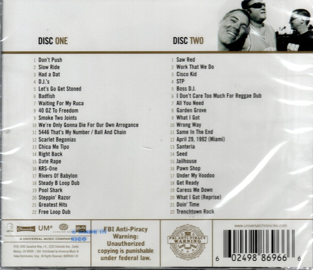 1-1 Don't Push 1-2 Slow Ride 1-3 Had A Dat 1-4 D.J.'s 1-5 Let's Go Get Stoned 1-6 Badfish 1-7 Waiting For My Ruca 1-8 40 Oz. To Freedom 1-9 Smoke Two Joints 1-10 We're Only Gonna Die For Our Own Arrogance 1-11 5446 That's My Number / Ball And Chain 1-12 Scarlet Begonias 1-13 Chica Me Tipo 1-14 Right Back 1-15 Date Rape 1-16 KRS-One 1-17 Rivers Of Babylon 1-18 Steady B Loop Dub 1-19 Pool Shark 1-20 Steppin' Razor 1-21 Greatest Hits 1-22 Free Loop Dub 2-1 Saw Red 2-2 Work That We Do 2-3 Cisco Kid 2-4 STP 2-5 Boss D.J. 2-6 I Don't CareToo Much For Reggae Dub 2-7 All You Need 2-8 Garden Grove 2-9 What I Got 2-10 Wrong Way 2-11 Same In The End 2-12 April 29, 1992 (Miami) 2-13 Santeria 2-14 Seed 2-15 Jailhouse 2-16 Pawn Shop 2-17 Under My Voodoo 2-18 Get Ready 2-19 Caress Me Down 2-20 What I Got (Reprise) 2-21 Doin' Time 2-22 Trenchtown Rock