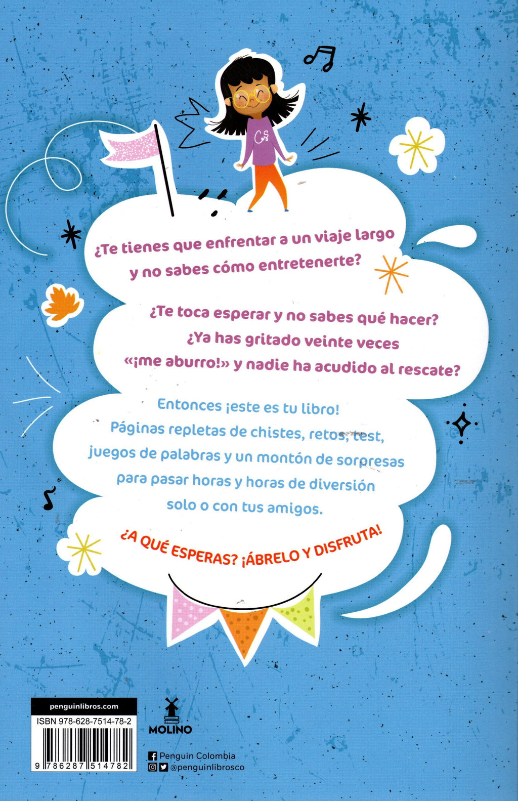 ¿Tienes que hacer un viaje largo y ya no sabes con qué entretenerte? ¿Te toca esperar y no sabes qué hacer? ¿Ya has gritado veinte veces ¡me aburro! y nadie ha acudido al rescate? Entonces, ¡este es tu libro! Sus páginas están repletas de chistes, retos, tests, juegos de palabras y un montón de sorpresas más para pasar horas y horas de diversión solo o con tus amigos o tu familia.