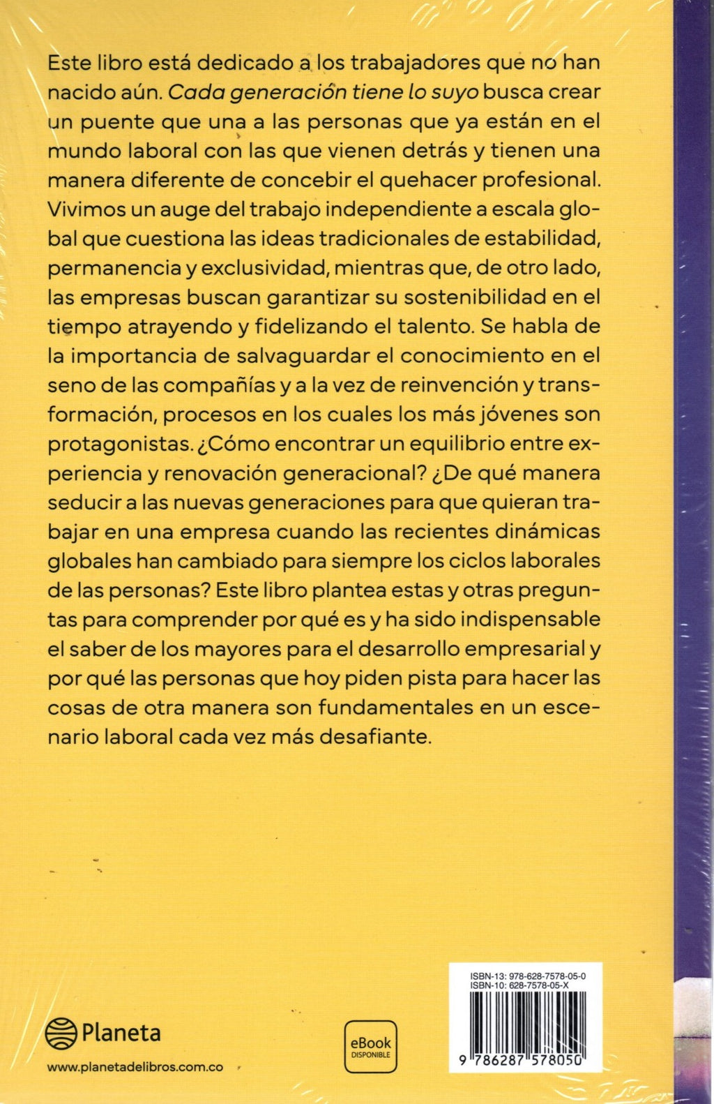 Este libro está dedicado a los trabajadores que no han nacido aún. La razón es que busca crear un puente que una a las personas que ya están en el mundo laboral con las que vienen detrás y tienen una manera diferente de concebir el quehacer profesional. Vivimos un auge del trabajo independiente a escala global que cuestiona las ideas tradicionales de estabilidad, permanencia y exclusividad, mientras que, de otro lado, las empresas buscan garantizar su sostenibilidad en el tiempo atrayendo y reteniendo talento. Se habla de la importancia de salvaguardar el conocimiento en el seno de las compañías y a la vez de reinvención y transformación, procesos en los cuales los más jóvenes son protagonistas. ¿Cómo encontrar un equilibrio entre experiencia y renovación generacional? ¿De qué manera seducir a las nuevas generaciones para que quieran trabajar en una empresa cuando las recientes dinámicas globales han cambiado para siempre los ciclos laborales de las personas? Este libro plantea estas y otras preguntas para comprender por qué es y ha sido indispensable el saber de los mayores para el desarrollo empresarial y por qué las personas que hoy piden pista para hacer las cosas de otra manera son fundamentales en un escenario laboral cada vez más desafiante.
