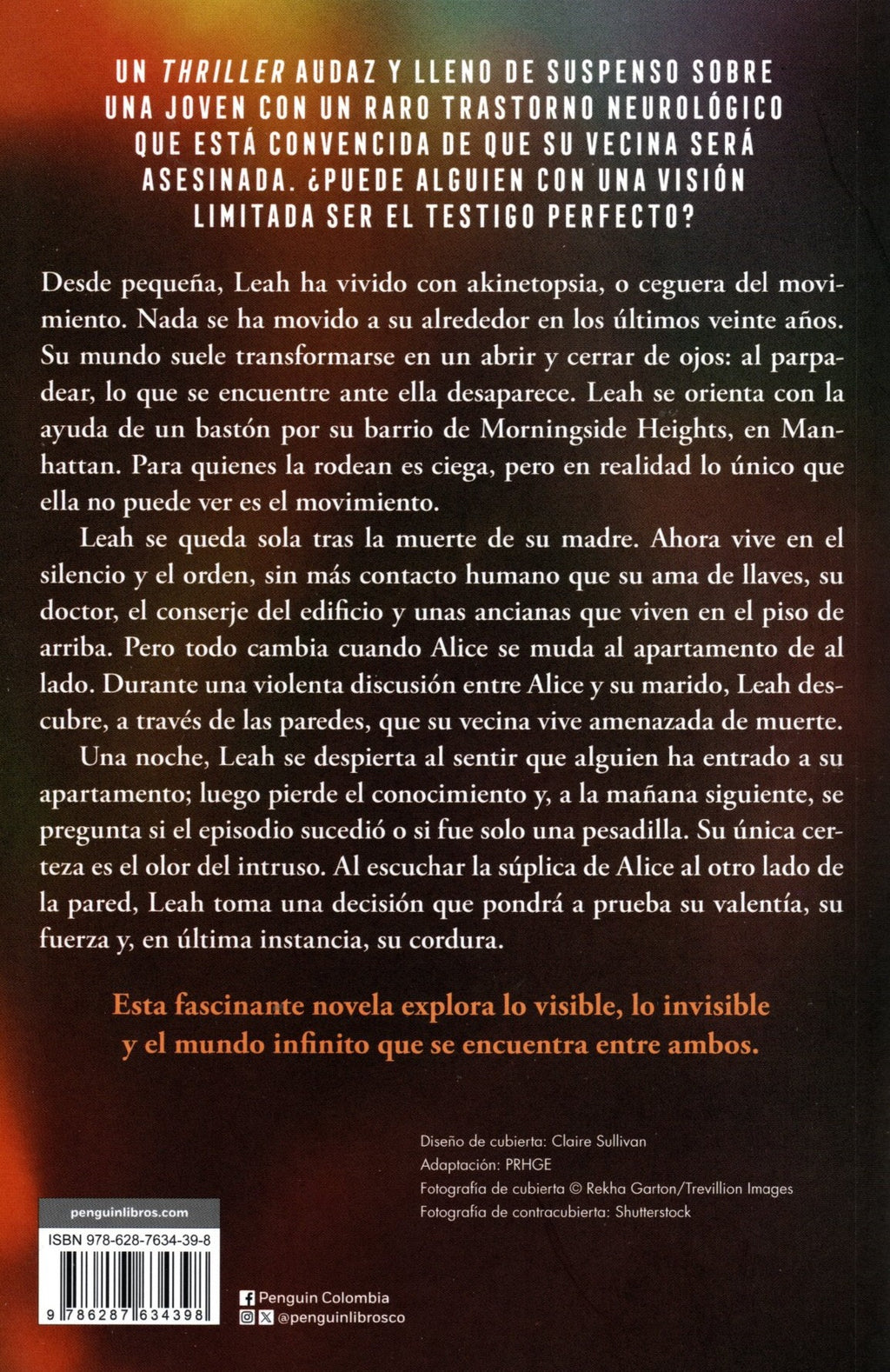 Leah ha vivido con akinetopsia, o ceguera al movimiento, desde que era niña. Durante los últimos veinte años, no ha podido percibir el movimiento. Mientras pasea por su vecindario en Upper Manhattan con su bastón blanco guiando el camino, la mayoría de la gente asume que es ciega. Pero la verdad es que Leah ve mucho, y con sus agudos sentidos del olfato y la audición, muy poco escapa a su atención.