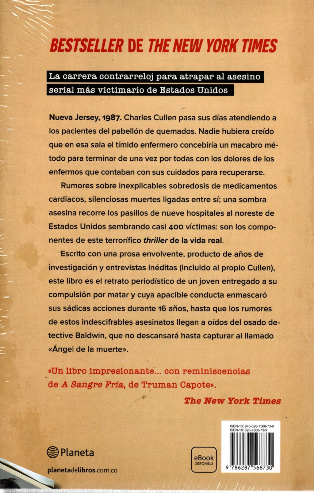 Escrito con una prosa envolvente, producto de años de investigación y entrevistas inéditas (incluido al propio Cullen), este libro es el retrato periodístico de un joven entregado a su compulsión por matar y cuya apacible conducta enmascaró sus sádicas acciones durante 16 años, hasta que los rumores de estos indescifrables asesinatos llegan a oídos del osado detective Baldwin, que no descansará hasta capturar al llamado «Ángel de la muerte».
