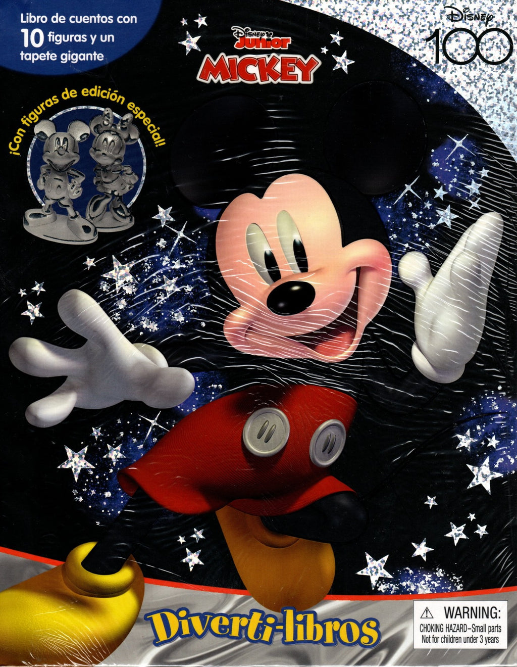 Libro de Disney con 10 figurines de plastico 2 pintadas en platino y un tapete de juego