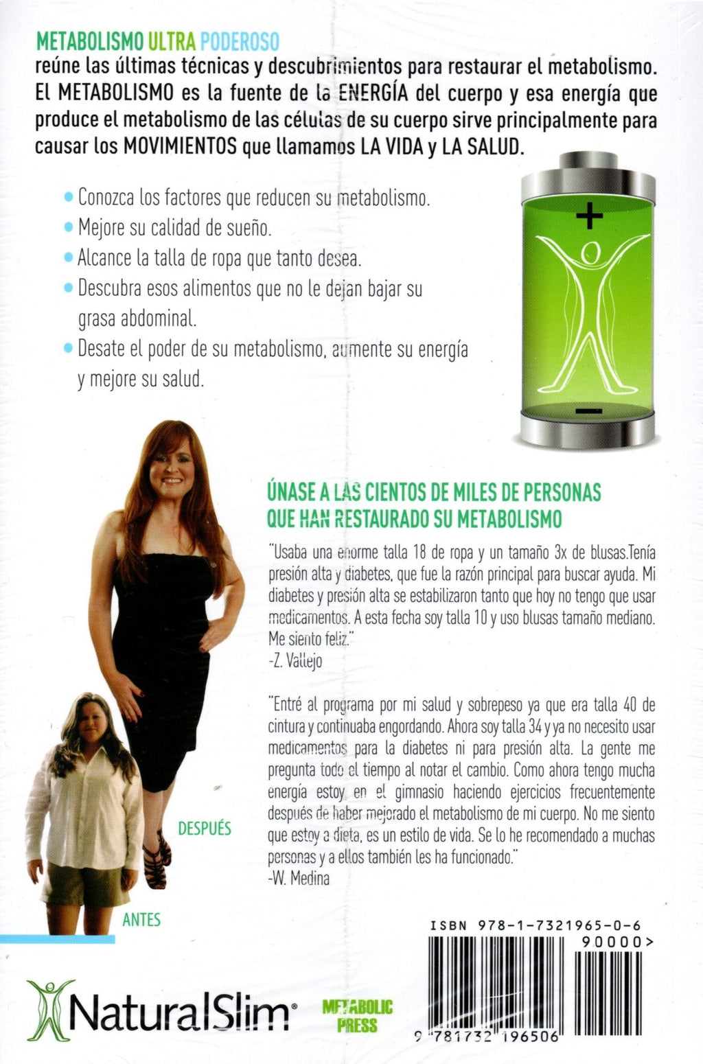 Metabolismo ultra poderoso reúne las últimas técnicas y descubrimientos para restaurar el metabolismo. El metabolismo es la fuente de la energía del cuerpo y esa energía que produce el metabolismo de las células de su cuerpo sirve principalmente para causar los movimientos que llamamos la vida y la salud. Con este libro podrá: conocer los factores que reducen su metabolismo; mejorar su calidad de sueño; alcanzar la talla de ropa que tanto desea; descubrir esos alimentos que no le dejan bajar su grasa abdominal, desatar el poder de su metabolismo; aumentar su energía y mejorar su salud. Únase a las cientos de miles de personas que han restaurado su metabolismo.