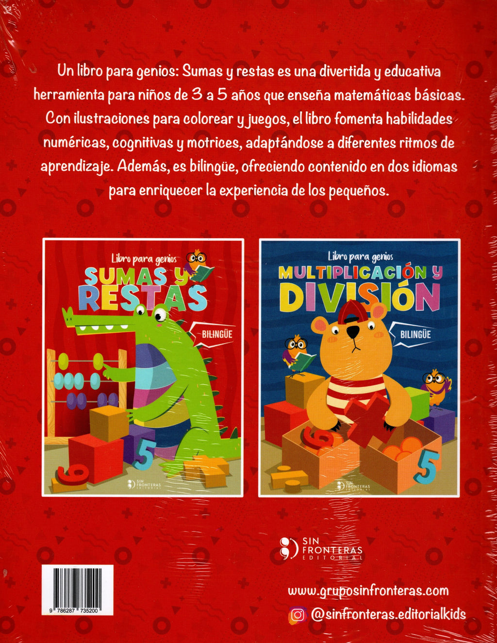 Un libro para genios: Sumas y restas es una divertida y educativa herramienta para niños de 3 a 5 años que enseña matemáticas básicas.