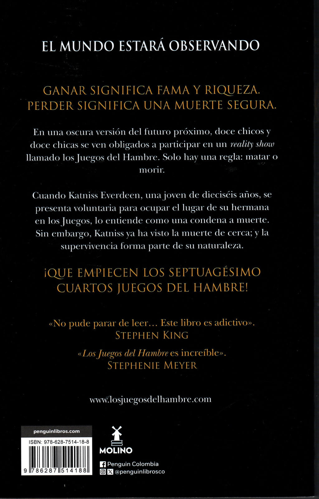 Cuando Katniss Everdeen, una joven de dieciséis años se presenta voluntaria para ocupar el lugar de su hermana en los juegos, lo entiende como una condena a muerte. Sin embargo, Katniss ya ha visto la muerte de cerca y la supervivencia forma parte de su naturaleza.