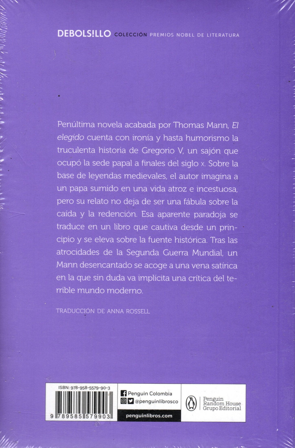 El elegido es la anteúltima novela que Thomas Mann acabó antes de morir en 1955. Basada en fuentes medievales, cuenta con ligereza y hasta humorismo la truculenta historia del papa Gregorio V, un alemán que ocupó el trono de San Pedro a finales del siglo X. Mann imagina una vida llena de episodios atroces e incestuosos, pero su retrato no excluye una fábula ejemplar sobre la caída y la redención. La mezcla de tonos seduce a los lectores desde un principio y, con reglas muy particulares, trasciende cualquier novela histórica al uso. Obra de madurez, redactada tras la Segunda Guerra Mundial, esta ficción personalísima alberga una vena satírica que puede ser, también, una enorme ironía sobre el terrible mundo moderno.