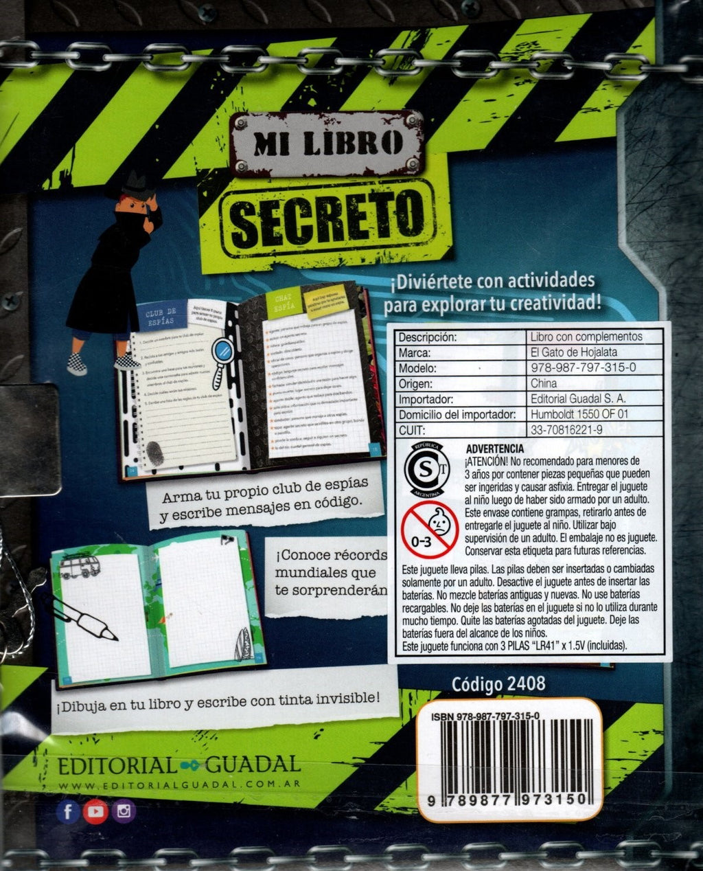 Este libro está repleto de entretenimiento y actividades. Ofrece una amplia gama de propuestas creativas sobre los temas que más fascinan a los jóvenes. Además, incluye un bolígrafo especial que escribe en tinta invisible, visible únicamente con una linterna ultravioleta, la cual viene incorporada en el capuchón del bolígrafo.
