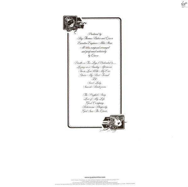 A1 Death On Two Legs (Dedicated To...... A2 Lazing On A Sunday Afternoon A3 I'm In Love With My Car A4 You're My Best Friend A5 '39 A6 Sweet Lady A7 Seaside Rendezvous B1 The Prophet's Song B2 Love Of My Life B3 Good Company B4 Bohemian Rhapsody B5 God Save The Queen
