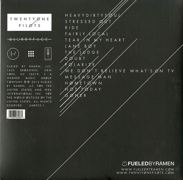A1 Heavydirtysoul 3:55 A2 Stressed Out 3:22 A3 Ride 3:35 A4 Fairly Local 3:27 B1 Tear In My Heart 3:09 B2 Lane Boy 4:13 B3 The Judge 4:58 C1 Doubt 3:12 C2 Polarize 3:47 C3 We Don't Believe What's On TV 2:57 C4 Message Man 4:00 D1 Hometown 3:55 D2 Not Today 3:58 D3 Goner 3:57